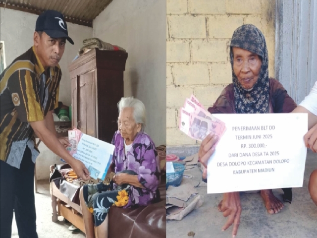 MADIUN| DutaIndonesia.com – Sebanyak 35 keluarga penerima manfaat (KPM) warga Desa Dolopo Kecamatan Dolopo Kabupaten Madiun telah menerima dana bantuan langsung tunai (BLT) sebesar 300 ribu rupiah untuk termin bulan Juni dan Juli yang berasal dari alokasi anggaran dana desa (DD) tahun 2025. Penyaluran tersebut dilaksanakan di Kantor Desa Dolopo pada Selasa (15/7/2025).