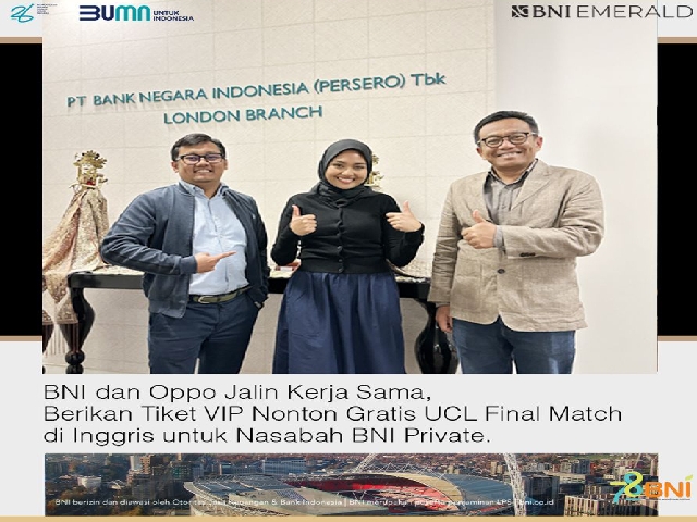 Berkolaborasi dengan Oppo Indonesia, BNI melalui loyalty program kepada Next Gen Nasabah BNI Private memberikan VIP Access for Hospitality UCL Final 2024 di Wembley Stadium, London, Inggris.