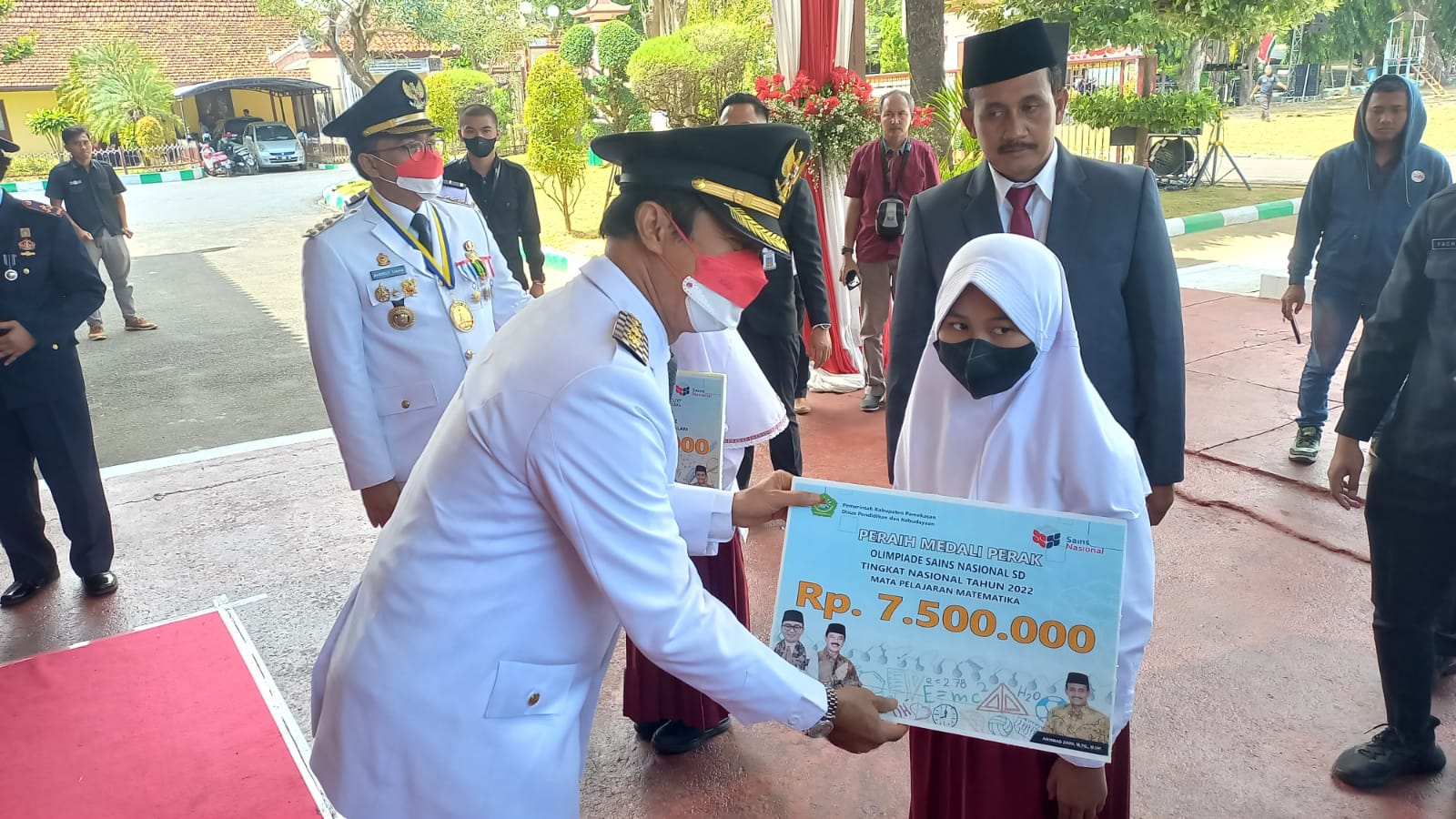 Dua siswi berprestasi tersebut, Rabu (17/8/2022) mendapat hadiah dari Bupati Pamekasan Baddrut Tamam masing-masing Rp 7.500.000 yang diserahkan usai upacara bendera peringatan detik detik Proklamasi Kemerdekaan RI ke 77 di Pendopo Ronggosukowati Pamekasan.