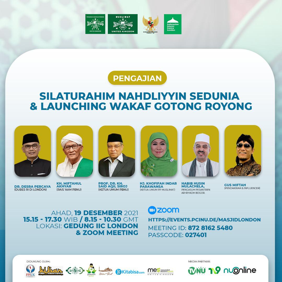Pengurus Besar Nahdlatul Ulama (PBNU) pun memberikan dukungan penuh untuk pendirian Masjid Indonesia di London, Inggris, dalam program Wakaf Gotong Royong. Bahkan PBNU akan menggandeng Presiden Jokowi, Wakil Presiden KH Ma’ruf Amin, hingga Menteri Luar Negeri RI Retno L. Marsudi untuk mempercepat pembangunan masjid tersebut.