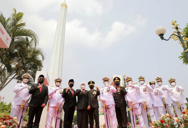 SURABAYA|DutaIndonesia.com – Dengan mengusung tema Pahlawanku Inspirasiku, peringatan Hari Pahlawan tahun 2021 dilangsungkan dengan khidmat oleh Pemerintah Provinsi Jawa Timur di lapangan kompleks Monumen Tugu Pahlawan Jl. Pahlawan, Alun-Alun Contong, Surabaya, Rabu (10/11/2021).