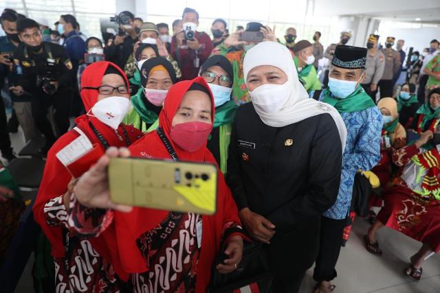SIDOARJO|DutaIndonesia.com – Gubernur Jawa Timur Khofifah Indar Parawansa melepas langsung pemberangkatan ibadah umroh yang kedua kalinya dari Bandara Internasional Juanda, Sidoarjo, Jatim, Selasa (15/3/2022).