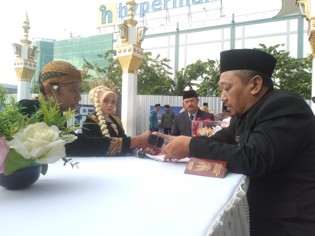 Walikota Madiun, H. Maidi sebagai saksi salah satu peserta Nikah Massal yang digelar Pemkot Madiun.