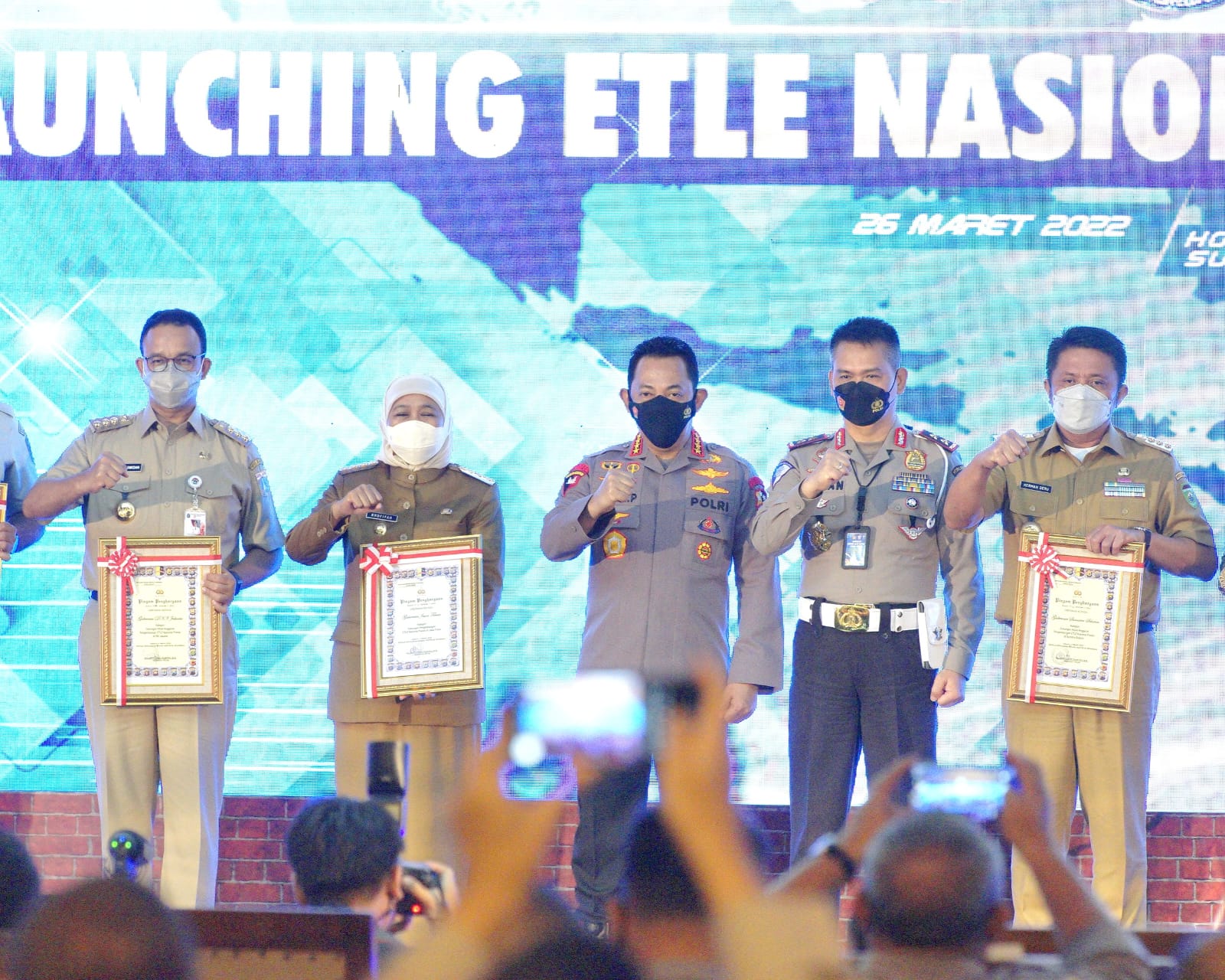 Selain diberikan pada Gubernur Khofifah, penghargaan ETLE Nasional Presisi juga diberikan kepada beberapa Kepala Daerah. Seperti Gubernur DKI Jakarta Anies Baswedan, Gubernur Jawa Tengah Ganjar Pranowo yang diwakili oleh Wagub Jateng Taj Yasin Maimoen, serta juga pada Gubernur Sumatera Selatan Herman Deru.