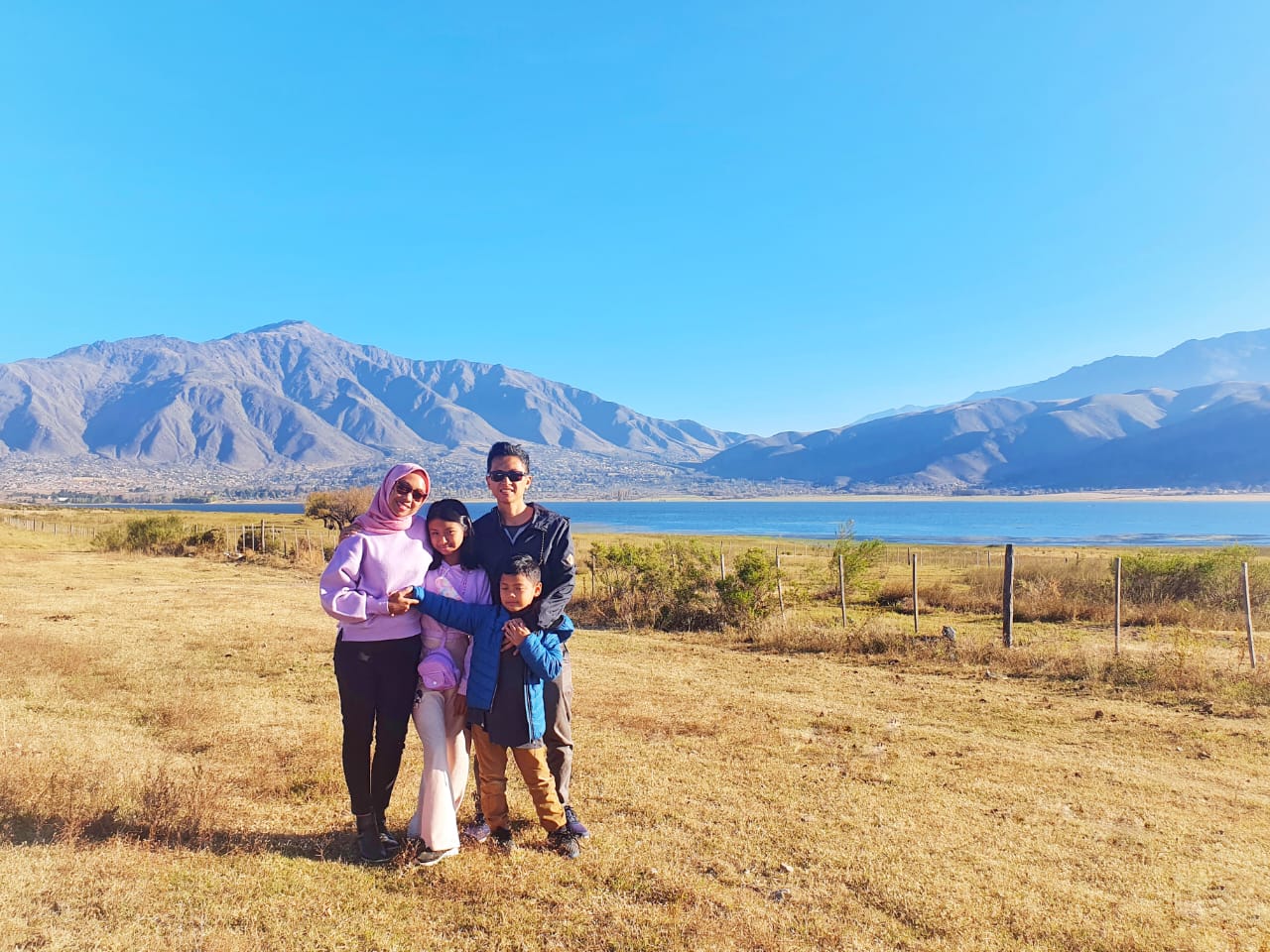 Meta Ayu Puspitantri dan suami serta dua anaknya berpose di Tafí del Valle yang indah. Mengagumi kebesaran Allah SWT di negeri orang.