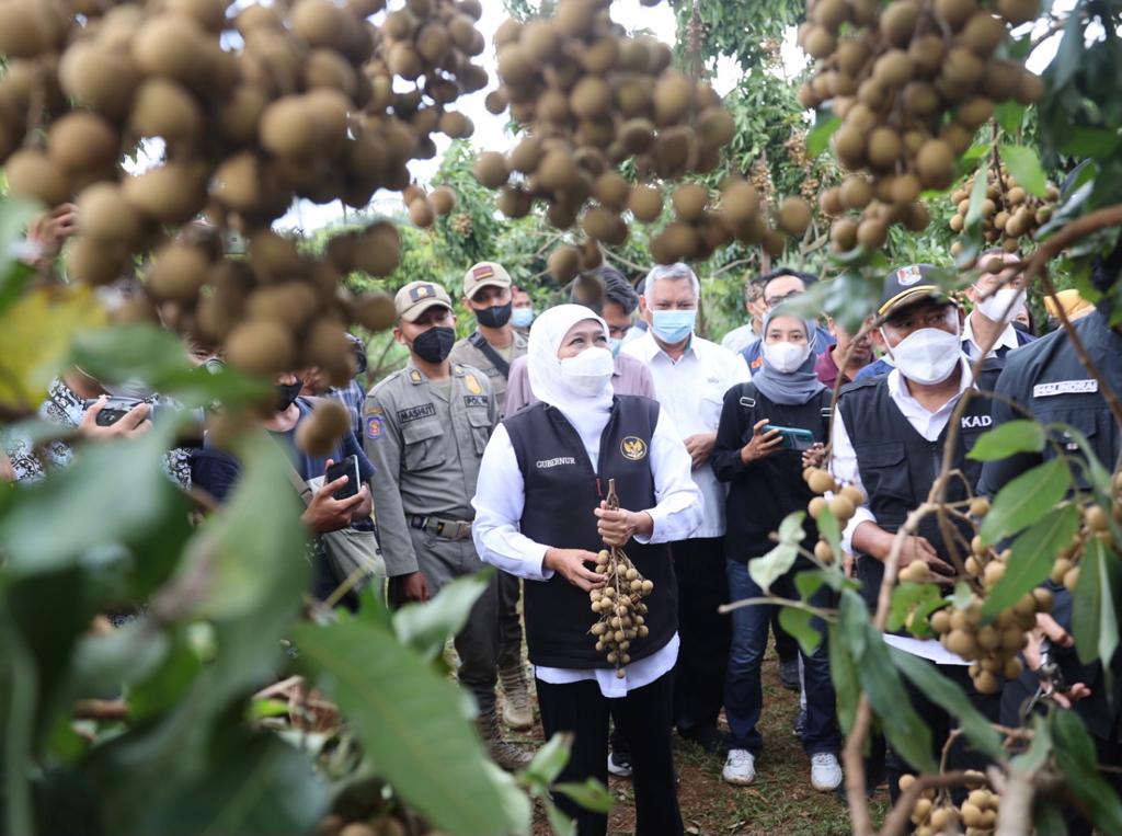 TUBAN|DutaIndonesia.com – Gubernur Jawa Timur Khofifah Indar Parawansa melakukan panen klengkeng di Kebun Klengkeng milik Kelompok Tani Ngudi Tirto Makmur di Desa Sugihan, Kecamatan Merakurak, Kab. Tuban, Selasa (1/2/2022).