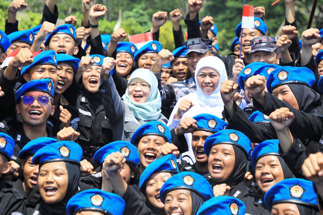 Pada kesempatan tersebut, para taruna-taruni peserta upacara juga mengucapkan yel-yel yang disaksikan langsung oleh Gubernur Khofifah.