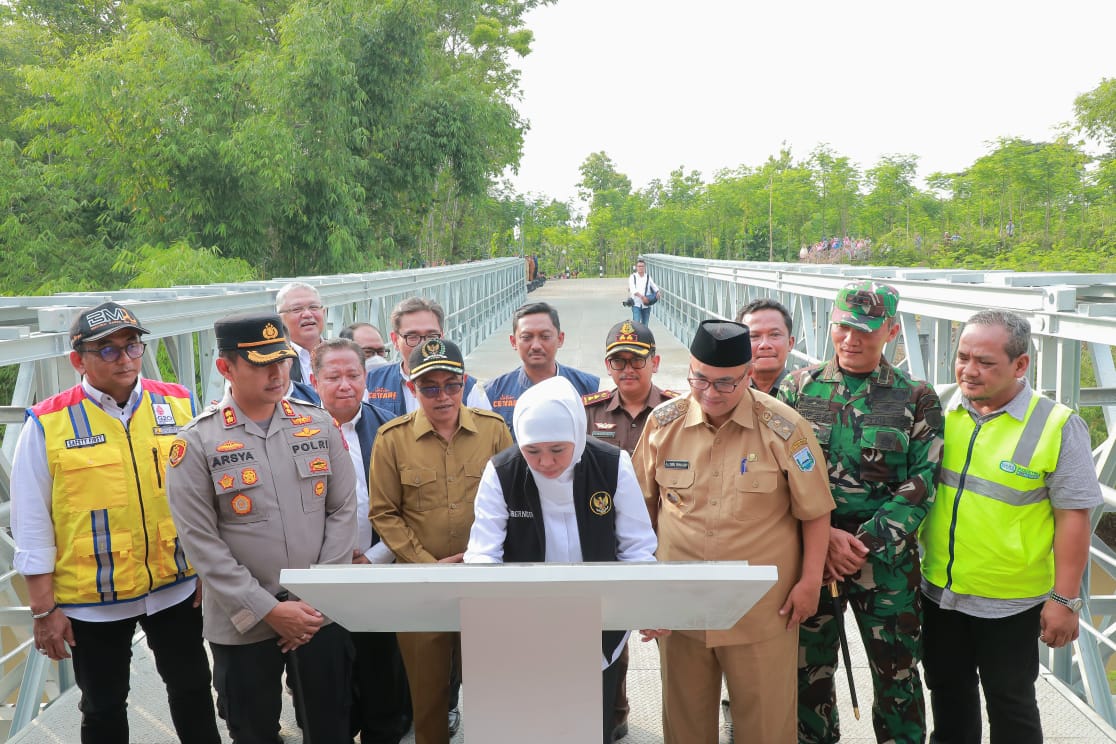 Ia mengatakan Pemprov Jatim telah berhasil menyelesaikan pekerjaan rekonstruksi jembatan dengan design Jembatan Bailey.
