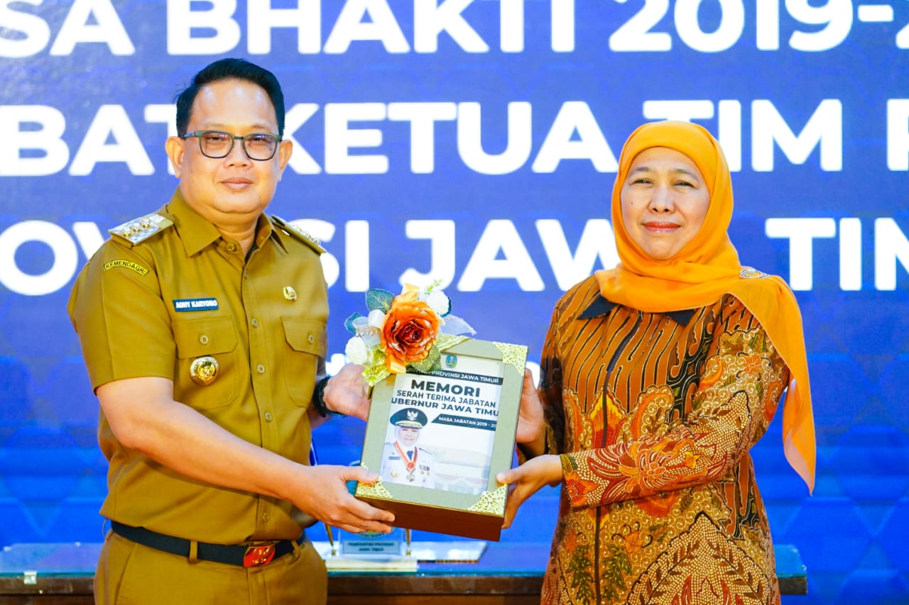 “Selamat menjalankan tugas sebagai Pj. Gubernur Jawa Timur Pak Adhy Karyono. Semoga amanah, lancar, sukses dan manfaat barokah,” tegas Khofifah yang dalam kesempatan ini juga menyerahkan buku memori jabatan pada Pj Gubernur Jatim.